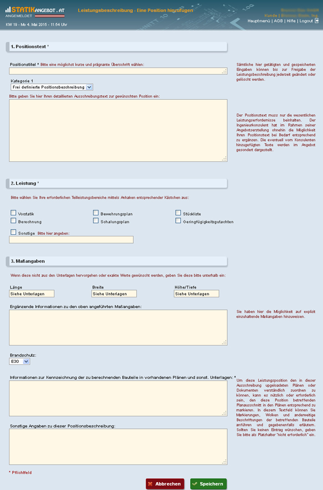 • | Überprüfung und Freigabe der Leistungsbeschreibung durch StatikAngebot.AT; |