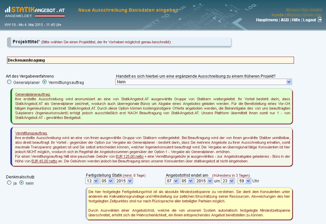 StatikAngebot.AT versteht sich als Internetplattform einerseits mit dem Ziel - die für baustatische Arbeitsprozesse erforderlichen - Ingenieursdienstleistungen online zu vernetzen, und andererseits, um - durch optimale Nutzung freier Ressourcen - Offerte direkt an den Auftraggeber weitergeben zu können.